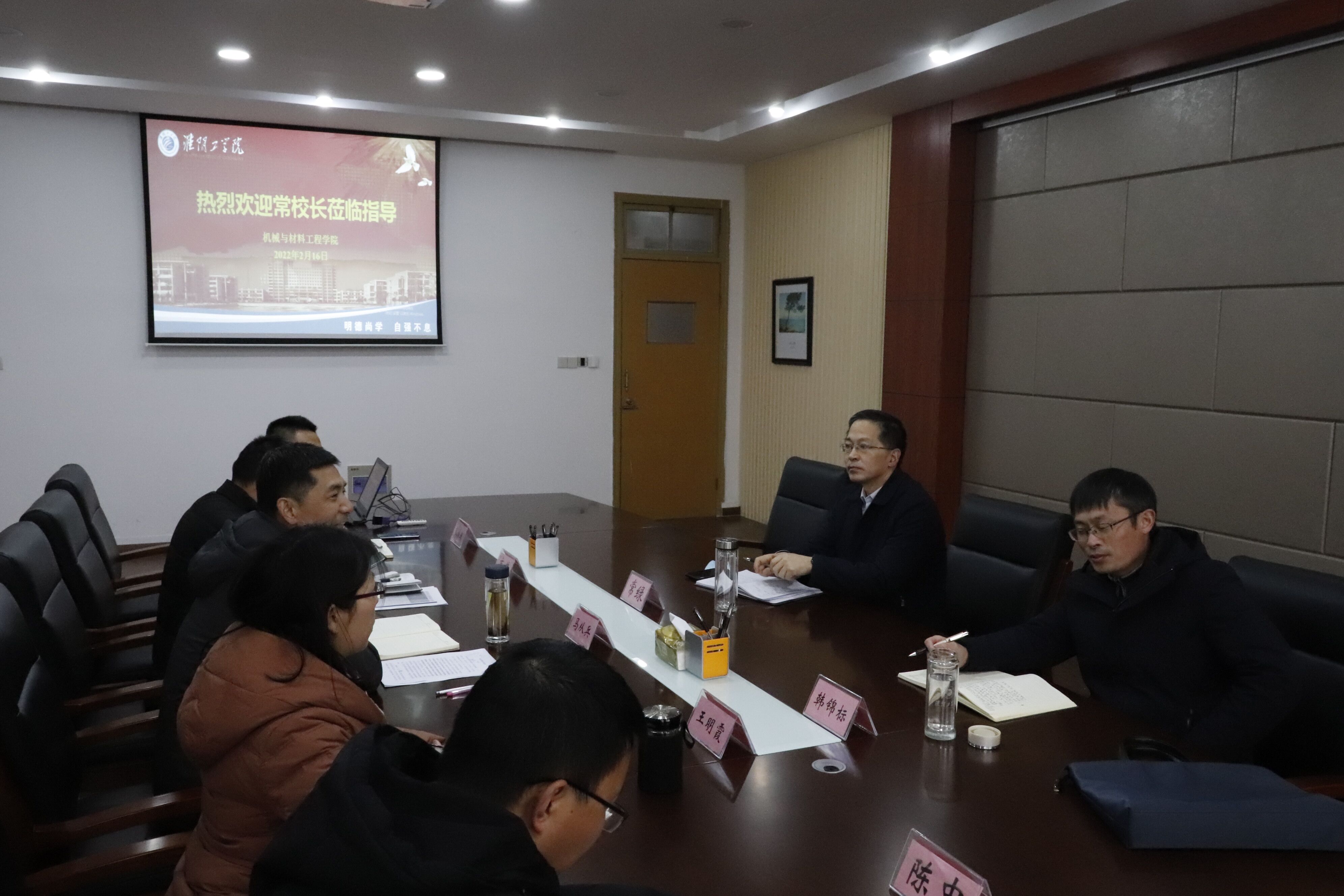 常绿校长对机材学院近年来取得的成绩给与了充分肯定,同时围绕学院的目标定位、专业设置、师资建设、人才培养、平台建设等方面跟大家进行了座谈交流。常绿校长鼓励机材学院乘势而上,做好国家教学成果奖和科技进步奖的申报工作,在产业学院现有基础上,进一步做好精准设计,进一步提升学生工作的特色亮点,鼓励机材学院加快发展步伐,为淮安大学创建作出更大的贡献。