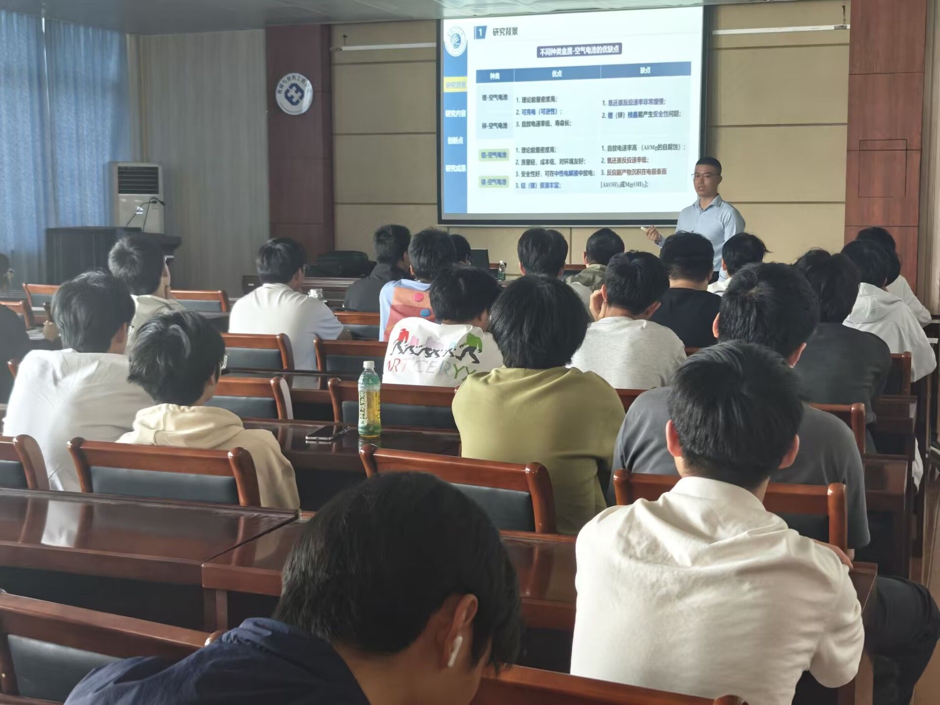2025年4月23日下午,淮阴工学院机械与材料工程学院在15401议室开展学术专题讲座。学院副院长陈中教授主持本次活动,青年博士黄慧宇老师以"超声辅助型金属-空气电池构建及机理研究"为题作学术报告,吸引了学院众多师生积极参与。
