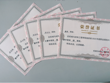在机材学院的精心组织、广泛动员、细致辅导以及在校级赛事中的优异成果,学院被授予“优秀组织奖”。这一荣誉是对学院高度重视学生职业生涯发展教育工作、全方位构建生涯教育体系的充分肯定。